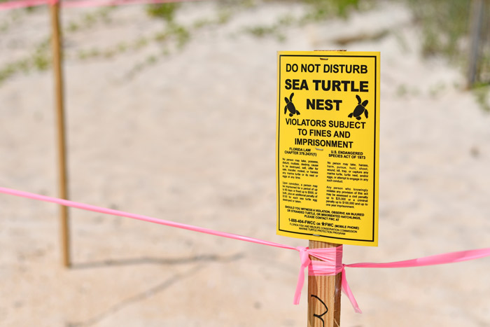 • Giving nesting turtles plenty of space—at least 50 feet—and never shining lights directly at them.
